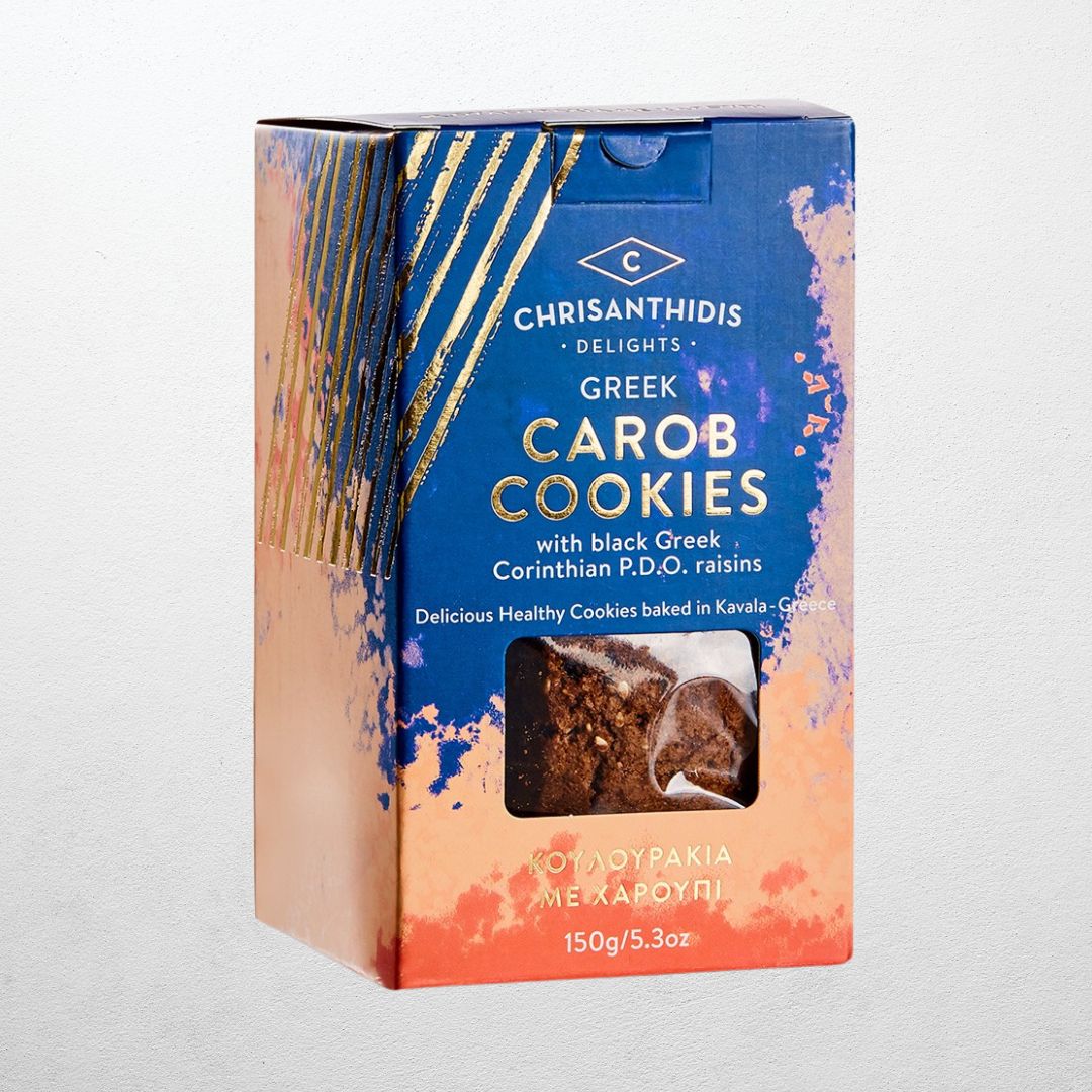 Traditionelles Gebäck aus Johannisbrotmehl und schwarzen griechischen Korinthen. Hergestellt in der familiengeführten Konditorei Chrisanthidis (seit 1924).