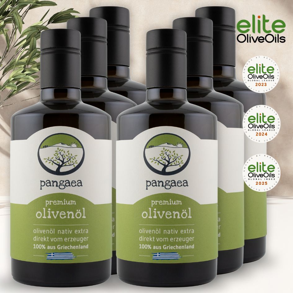 Unser vielfältig einsetzbares Pangaea Olivenöl im sechser Pack